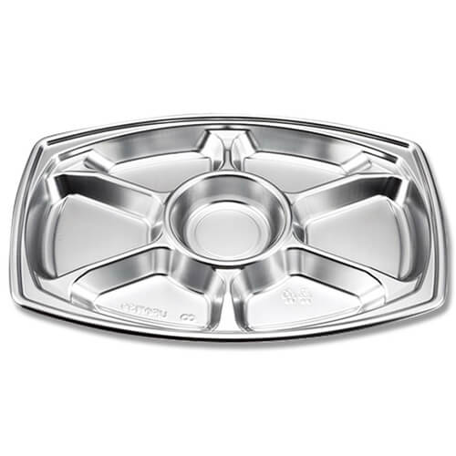 パーティーやイベントシーンにぴったりの小判型タイプの容器です。仕切りがあるタイプなので、色々な種類の食材に対応でき便利です。※電子レンジ使用不可※オーブン使用不可※耐油性:なし※耐熱温度:85度
