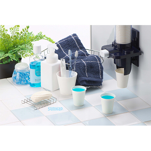 ●紙コップを1個ずつ取り出せる押しボタン式で衛生的にお使いいただけます。