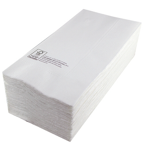 ●ディナー・コースランチ・ビュッフェなどに適した45cm・8折タイプのペーパーナプキン(印刷あり)。2プライタイプ、白の50枚入です。