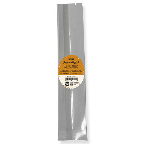 ●寸法:厚0.052×幅45×高220mmです。100枚×90パックセット。<BR>●耐湿性の高いフィルムでお菓子を保護。脱酸素剤との併用で、鮮度保持が可能です。<BR>●ヒートシーラーによるシール留めが可能です。<BR>●開封用のVノッチ(切り込み)あり。<BR>●食品衛生法規格基準適合商品です。<BR>※必ず実装試験を行ってからご利用ください。