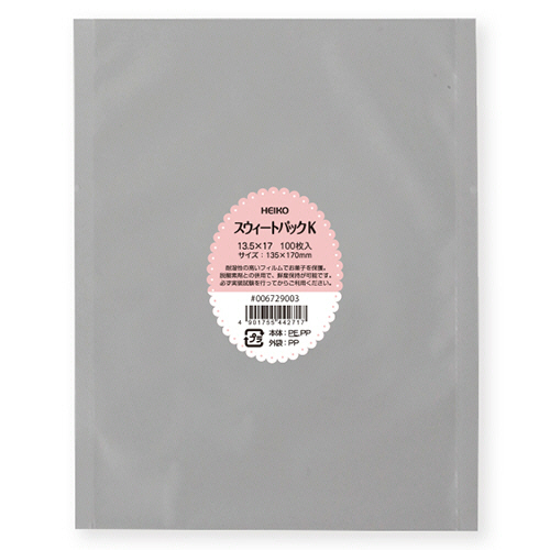 カマス貼りと呼ばれる平袋タイプのポリ袋で、主に焼菓子などの包装に使用されます。