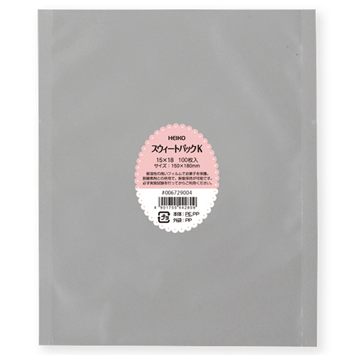 カマス貼りと呼ばれる平袋タイプのポリ袋で、主に焼菓子などの包装に使用されます。