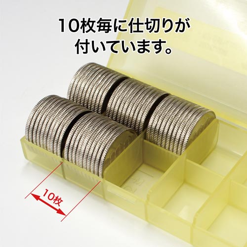 100枚収納ができるコインケース。10枚ごとに仕切りがついているので硬貨の管理がしやすくなっています。