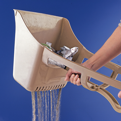 ●ゴミと砂利を同時に掃き込んでも、チリトリの後ろにあるスリットによってゴミを振り分けられます。砂と砂利だけが振るい落とされ、落ち葉などのゴミだけがチリトリの中に残ります。