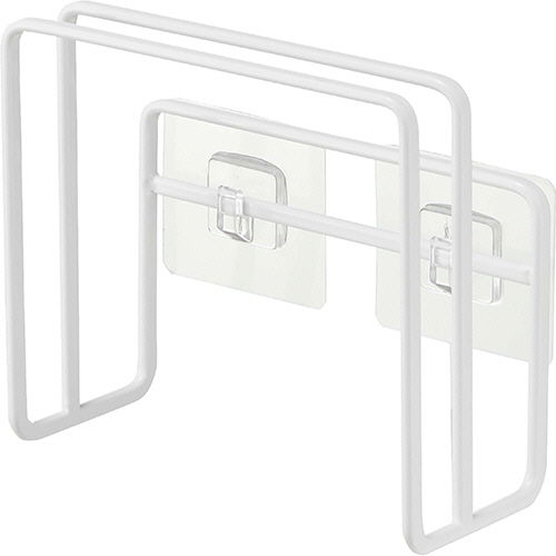 フィルムフックでお好みの位置に簡単取り付けできるまな板ホルダー。