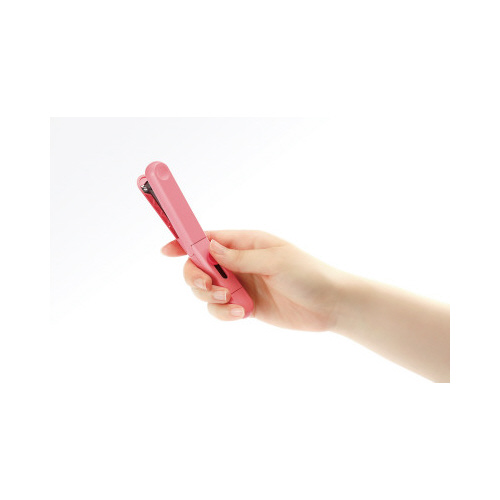 ペンケースに綺麗に収納しやすいスティック型のホッチキス。ボタン操作で、使う・たたむを簡単に切り替え!コンパクトサイズなのに針100本装てん可能で、使いやすい!