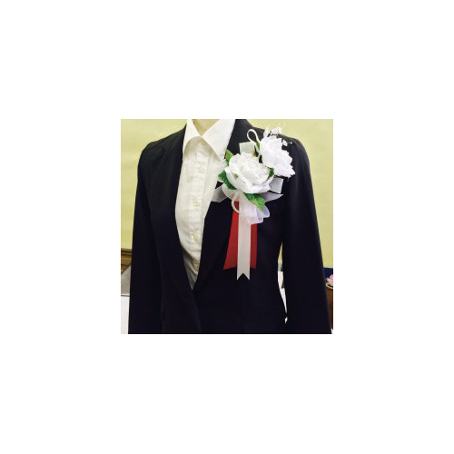 厳粛な式典や卒業式に。色々なイベントを可憐に彩る胸章コサージュです。1個ずつ個包装(紙箱)。裏にクリップと安全ピンが付いてます。タレは取り外しができます。