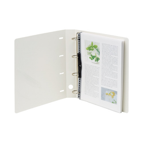 書類やクリヤーポケットがしっかり収容できるD型4穴リングファイル。コピー用紙300枚収容可能。