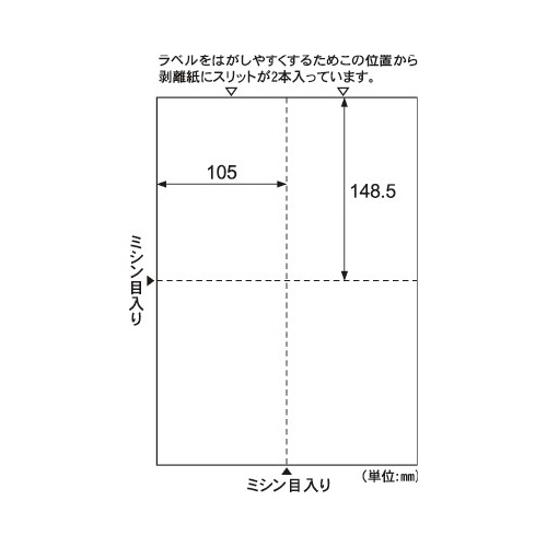台紙ごとミシン目切り離しができるラベル A4 4面