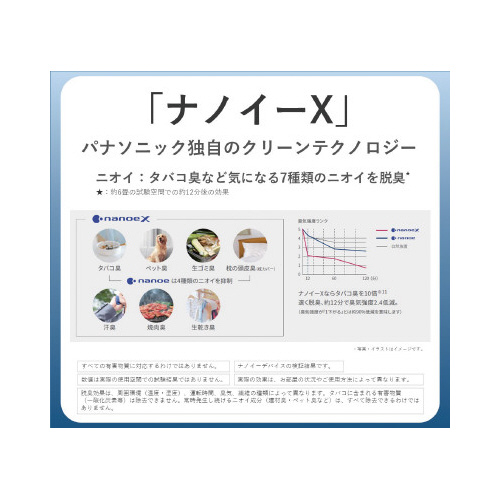 ナノイーX9.6兆搭載。3方向への立体的な気流で部屋全体を効率よく循環し、花粉の集じん量従来比約1.5倍を実現したパワフルに吸引。