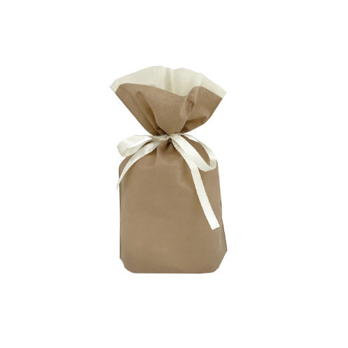 リボンの端を両側に引っ張るだけで簡単にラッピングできます。二重袋になっており高級感があります。