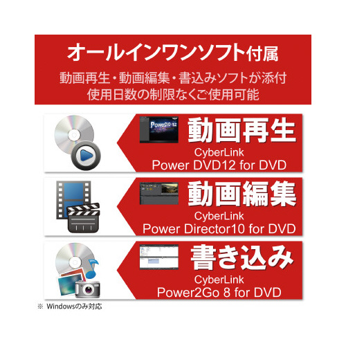USB2.0対応ポータブルDVDドライブ、動作再生/編集、書込みソフト付き。