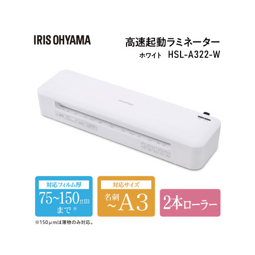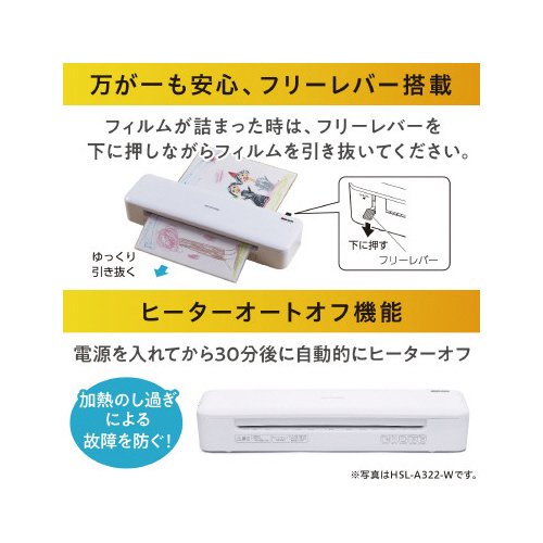 75μmフィルムに対応。より薄いフィルムで加工できるので、使用用途の幅が広がります。ウォームアップ時間約35秒、究極のスピードと仕上がりを追求した高速起動ラミネーターです。