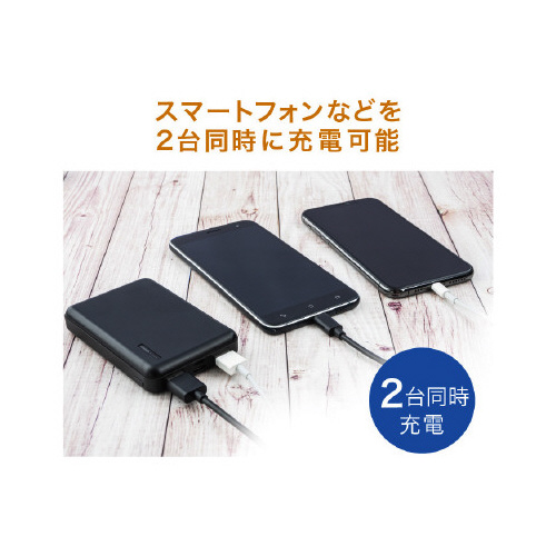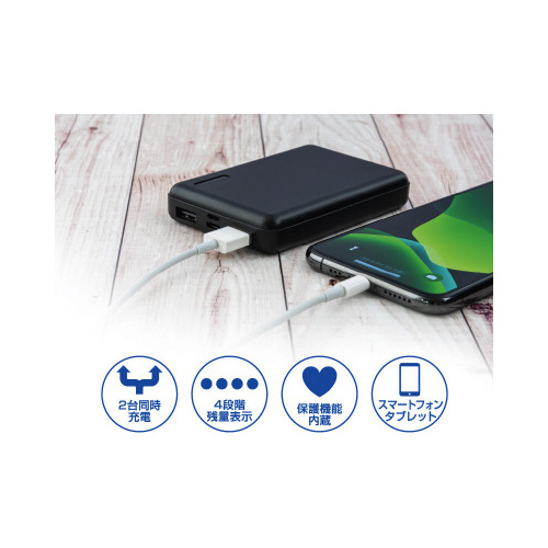 5000mAhスマートフォンなどを2台同時に充電可能、残量は4段階のLEDで表示されます。