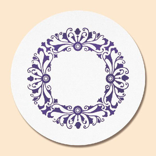 使い捨て紙製コースターです。唐草模様の、どこか懐かしくオシャレなコースターです。薄い丸型で手軽に使える絵柄入りです。