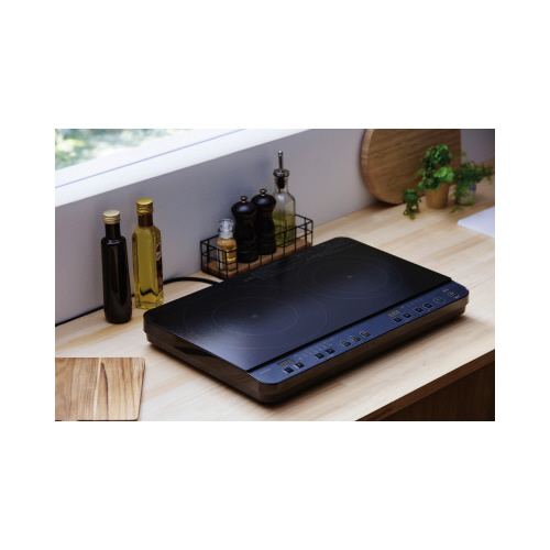 電気工事なしですぐに使える、コンパクトサイズの2口タイプのIHコンロです。お湯が沸くまで自動加熱する湯わかし機能とタイマー機能付きです。加熱調理から揚げ物まで多用途に使用できます。