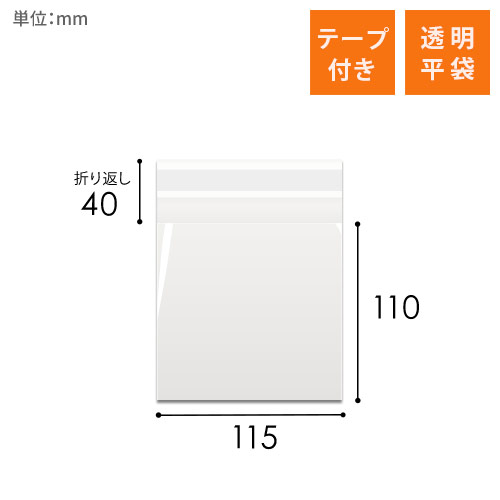 「OPP-S115-110T40」は、115mm×110mmのコンパクトなテープ付きOPP袋です。