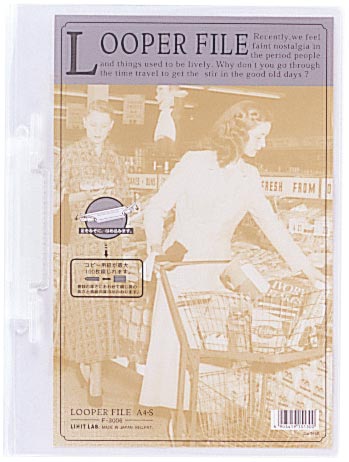 プレゼンテーションに最適なルーパーファイル。最大100枚までの書類をPP樹脂2穴とじ具でパチッととじられます。