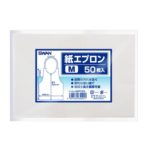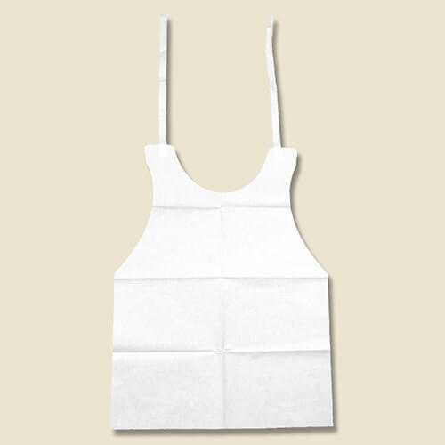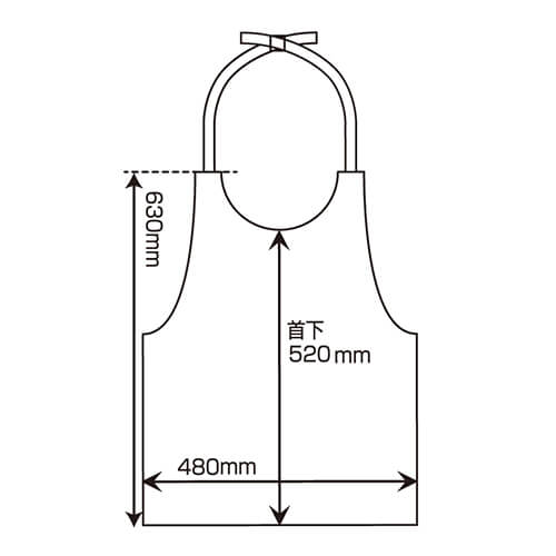 衣類の汚れを防ぐ、便利な使い捨てエプロンです。首回り長さ調節可能です。サイズは幅480mm・紐から下の高さ630mmです。