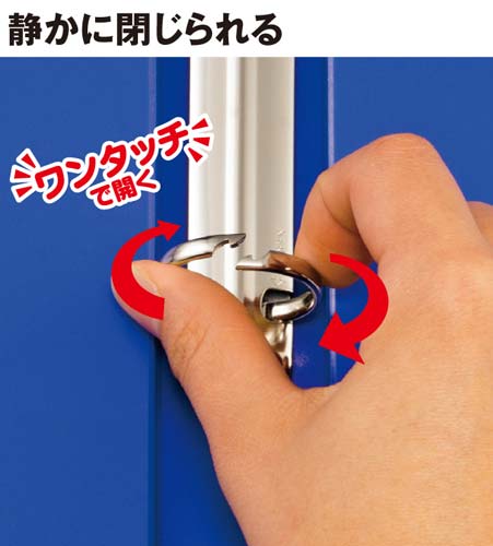 片方のリングをひねるだけで簡単に開きます。閉める時もパチンと音がしなくて安心です。書類がフラットになりやすい構造のリングファイルです。