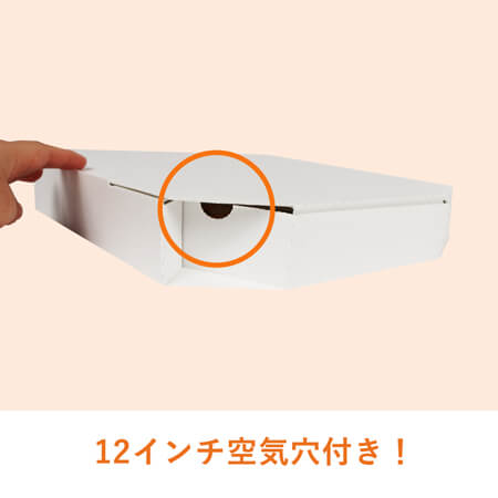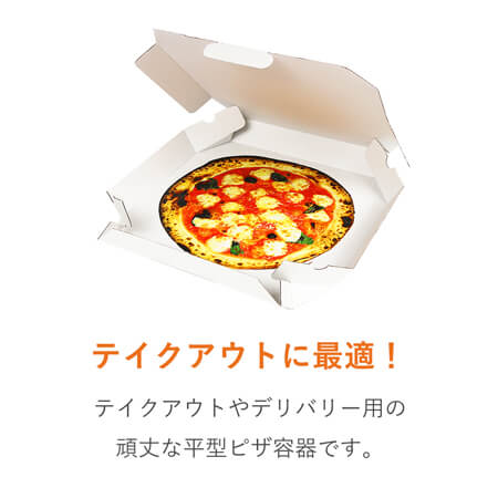 12インチ、直径約30センチのピザが入る、テイクアウト用の頑丈な平型ピザ容器です。