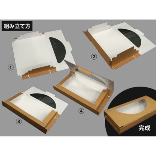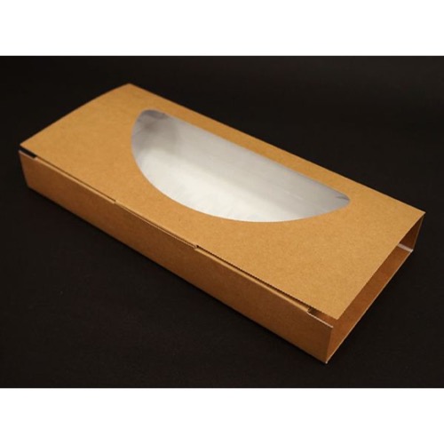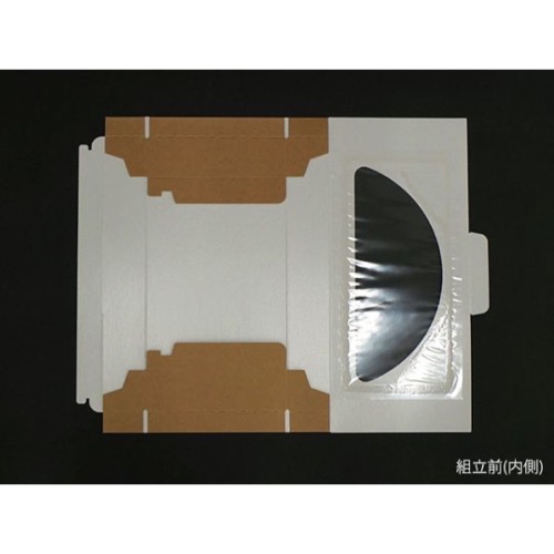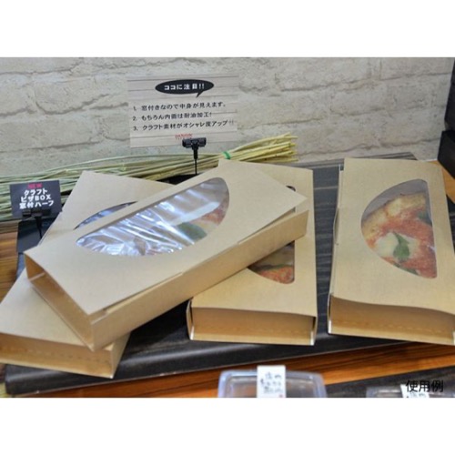 窓から中身が見えるので、そのまま店頭に並べてディスプレイできます。内面にハービル加工(食品対応ビニール液塗布)。窓貼り(防曇フィルム#30)