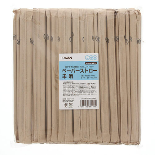 無漂白の未晒クラフト紙製の環境にやさしい紙ストローです。クラフト色はナチュラルな色合いで、カフェやイベント等どんな場面にもマッチします。1本ずつ袋に入ったタイプです。サイズは直径6×全長197mmです。
