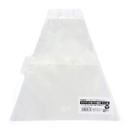 スリットテープ付きで、横に大きく開封でき、中身を取り出しやすいサンドイッチ用袋です。