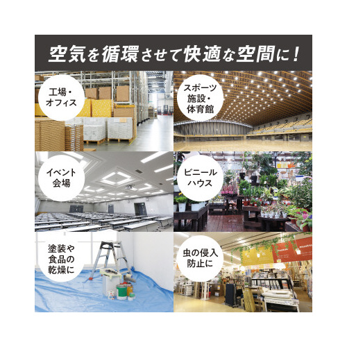 工場の室内全体の換気・送風に!スパイラル形状の前カバーを付けることで強力スポット送風を実現!