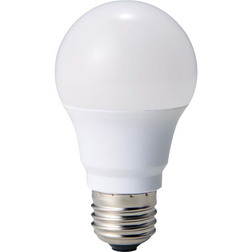 ジャスト電球サイズ。光が広がる配光角260度の全方向60Wタイプ。自然なあかりの昼白色。5年保証(保証書在中)。平均演色評価数Ra83。