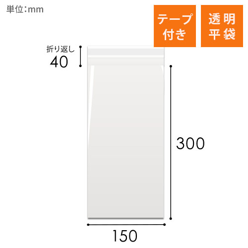 「OPP-S150-300T40」は、150mm×300mmの長尺サイズに対応したテープ付きOPP袋です。
