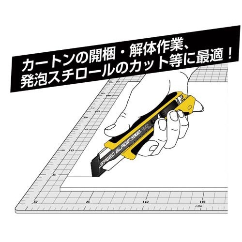 特専黒刃×フッ素加工で驚きの軽い切れ味!カートンの開梱、解体作業、発泡スチロールのカットに。替刃(大)を使用するカッターに付けられます。