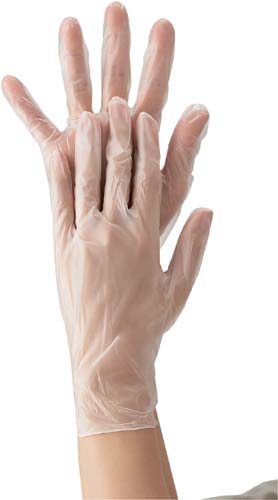 ミリオンブランドのプラスチック手袋。手にしっかりとなじみます。