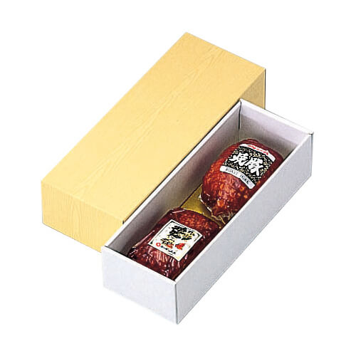 サイズが286×98×68mmのお肉やハム用ギフトパッケージ。焼豚の包装にちょうど良い大きさとなっています。ハムといった精肉類のパッケージ、ギフト包装にいかがでしょうか。