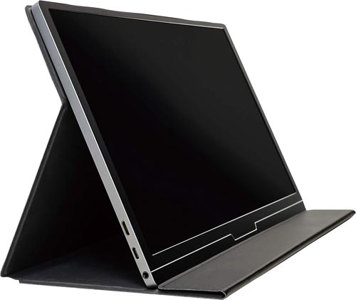 持ち運びに適した超軽量モバイルディスプレイ。使用時にスタンドにもなる、カバーケース付き