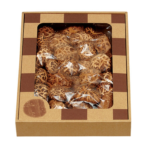 サイズが200×290×47mmの食品類向けギフトパッケージ。椎茸の包装にピッタリ!椎茸のパッケージ、ギフト包装にいかがでしょうか。