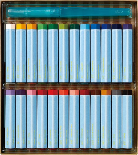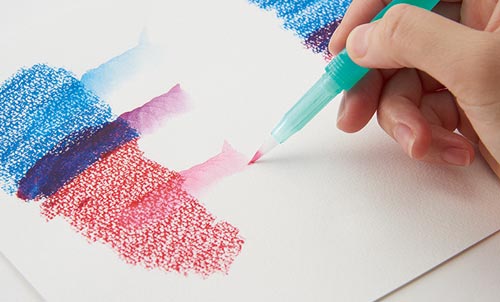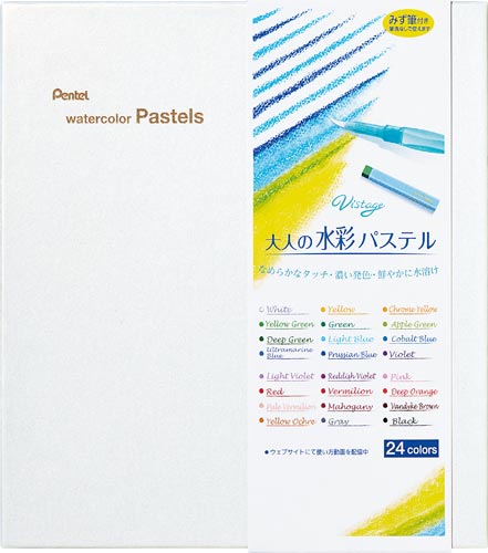 オイルパステルの基本性能を持つだけでなく、水に溶ける、なめらかなタッチの水溶性オイルパステルです。濃い発色だから、水に溶けても鮮やかな水彩表現が可能です。