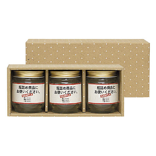 サイズが84×216×69(適応瓶・約直径68×84/フタ外寸240×102×702)mmの食品類向けギフトパッケージ。広口瓶(ジャム瓶等)L×3本にちょうど良い大きさとなっています。さまざまな食品類のパッケージ、ギフト包装にいかがでしょうか。