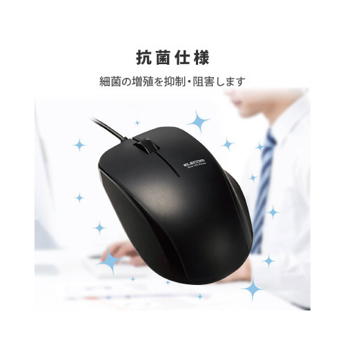 手に心地良くなじむ”手にぴた”設計のため、疲れにくく、握りやすい有線マウス。安心の抗菌仕様。