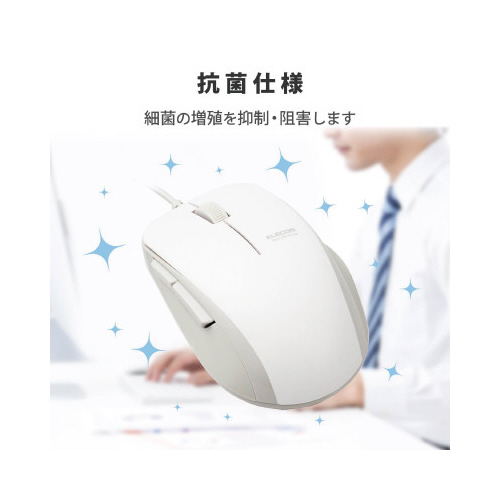 手に心地良くなじむ”手にぴた”設計のため、疲れにくく、握りやすい有線マウス。安心の抗菌仕様。