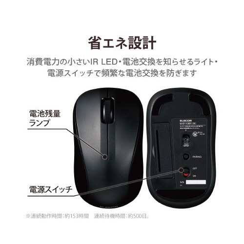 ●想定電池使用時間/約309日(1日8時間のパソコン操作中5%をマウス操作に割り当てた場合)