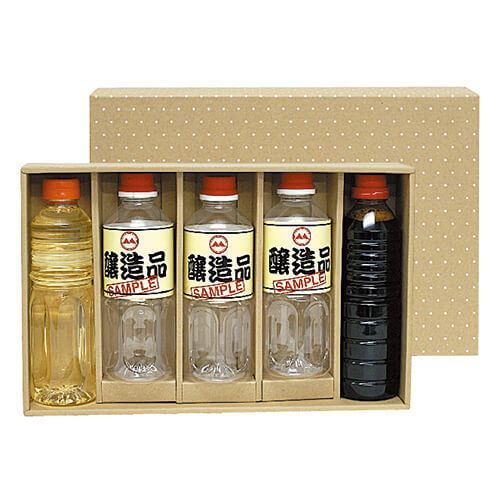 サイズが220×354×70(適応瓶・約直径68×220)mmのお酒類向けギフトパッケージ。500mlペットボトル5本にちょうど良い大きさとなっています。ビール・ジュース・調味料・詰合せのパッケージ、ギフト包装にいかがでしょうか。