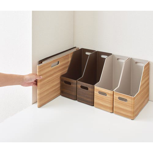 本物のようなおしゃれな木目の収納ボックス。軽くて丈夫な発泡PPで水にも強く濡れても安心。底面に段差付きで、ピッタリとスタッキング可能。使わない時は薄く畳んで隙間に収納。