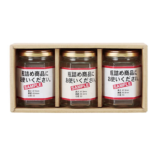 サイズが身192×90×58(適応瓶・約直径60×88)mmの食品類向けギフトパッケージ。広口瓶M×3本にちょうど良い大きさとなっています。さまざまな食品類のパッケージ、ギフト包装にいかがでしょうか。