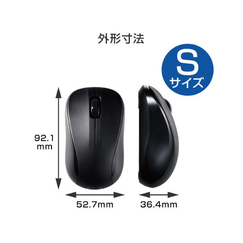 ●寸法/(マウス本体):幅52.7mm×奥行92.1mm×高さ36.4mm(レシーバ):幅18.0mm×奥行13.1mm×高さ5.7mm