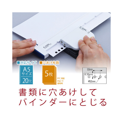 バインダーノート用の穴あけが簡単にできる多穴パンチです。ゲージのガイドに合わせてパンチを繰り返すことで手軽に「A5サイズ20穴」の穴あけができます。