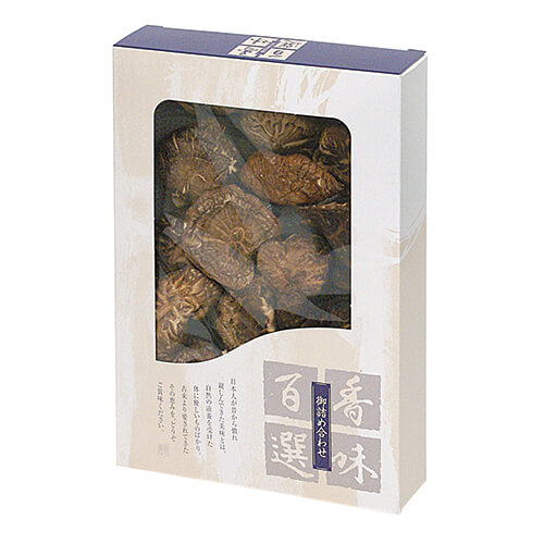 サイズが160×230×40mmの食品類向けギフトパッケージ。椎茸の包装にピッタリ!さまざまな食品類のパッケージ、ギフト包装にいかがでしょうか。