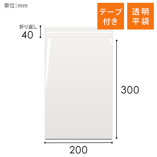 「OPP-S200-300T40」は、200mm×300mmの大容量サイズで、厚みのある商品や複数のアイテムをまとめて収納できるテープ付きOPP袋です。