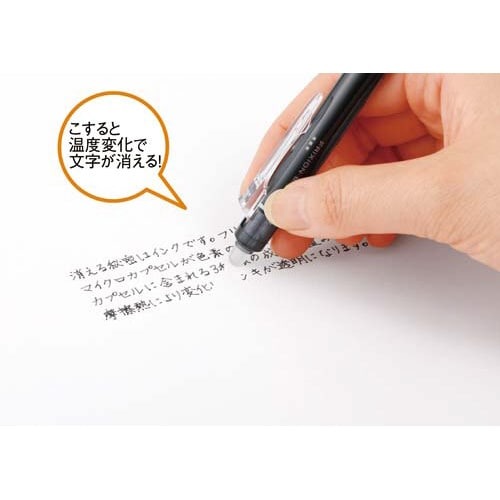 こするとインクが消えるフリクションのノック式ボールペン。