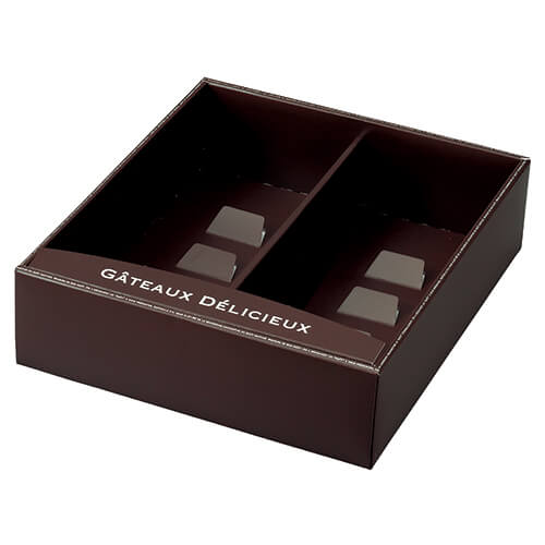 サイズが身226×260×70mmのお菓子向けギフトパッケージ。洋菓子の包装にちょうど良い大きさとなっています。より高級感を求める方にいかがでしょうか。
